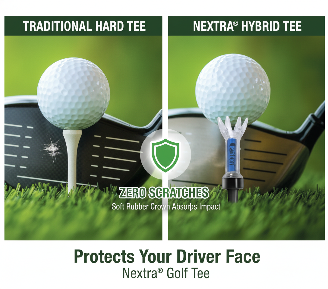 Unlike hard plastic tees that can scratch or scuff your $500+ driver, the soft rubber crown compresses on impact to protect the clubface. You get long lasting durability while keeping your driver looking brand new.